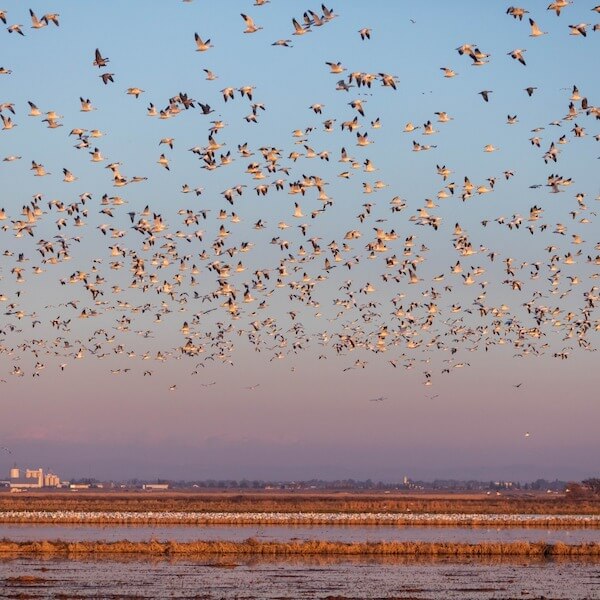 Over time, 95% of California's wetlands have disappeared, leaving hundreds of species without habitat. Today, Sacramento Valley’s 500,000 acres of rice fields mimic historical wetlands — and provide a home — to millions of birds, fish, and reptiles.