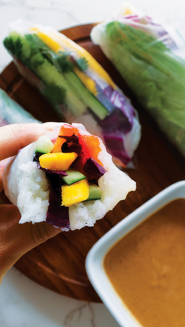 - Serve the spring rolls with the peanut sauce for dipping and enjoy!